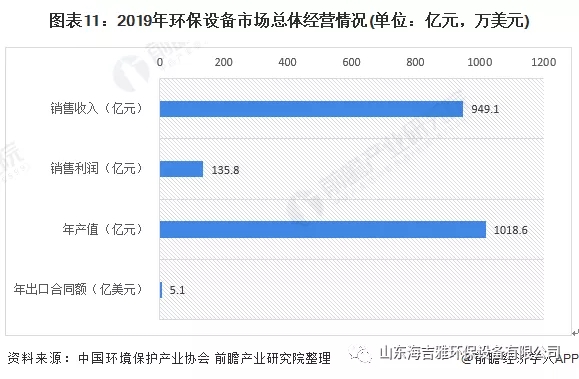 在(zai)《2020环保产业发展状况(kuang)报告》中,2019年纳(na)入统计的环(huan)保设备(bei)市场共有1583家企业;年产值为1018.60亿元(yuan),销售收(shou)入和销售利润分别为949.10亿元和135.80亿元,实现出口合(he)同额51245.60万(wan)美元。