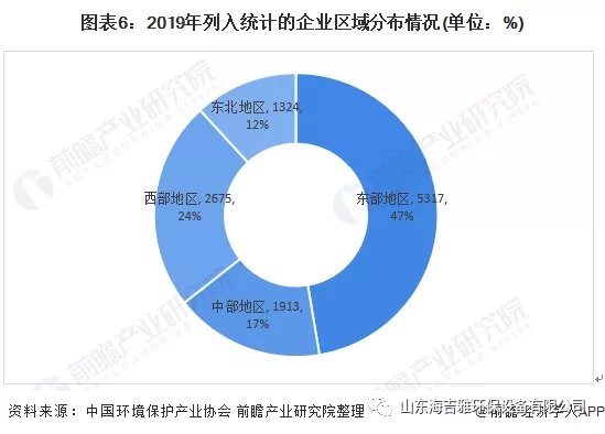 据环境(jing)保护产业(ye)协会统计数据,从领域分布(bu)看,11229家企(qi)业集中分布在环境监测、水污染(ran)防治、固废处置与资源化利用、大气污染防治领域,上述(shu)4个领域的企业数量之(zhi)和(he)占比达91.6%;其(qi)中,水、固2个领域企业的营业收入、营业利润占比(bi)分别高达76.5%和82.7%。从地域分布看,11229家(jia)企业有近半数集聚于东部地(di)区,中、西部和(he)东(dong)北三个地区的(de)企业总数占52.6%,仅比东部地区企业占比(bi)高5.2个百(bai)分点。东部地区环保企业的营业收入、营业利润(run)占比分别(bie)为67.4%、67.6%,远远(yuan)超过中、面部和东北三个地区企业的营业收入、营业利润。长江(jiang)经济(ji)带11省(市)以45.6%的企业数量占比贡献了近一半的产(chan)业营(ying)业收入。