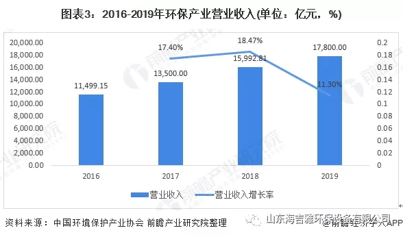 随着(zhe)污染防(fang)治攻坚(jian)战的实施,我国环保产业市场需求进一(yi)步释放,环(huan)保产业发展的营商环境持续改善,环保产业规(gui)模继续保持较快增(zeng)长,全行业工艺和技术装备水平稳步提升、创新模式深入推进,产业结构不(bu)断完善,行业格局逐步优化(hua)。尽管受到2018年产(chan)业发展流动性危机余波及中美贸(mao)易摩擦的影响,2019年一些环保企(qi)业依然面临着经营危机,但总体来看,2019年环保产业整体发展态势趋好,持续保持(chi)了较快发展。据中国环境保护(hu)产业协会测算数据,2019年(nian)全国环保产业营业收入约17800亿元(yuan),较(jiao)2018年增长(zhang)约11.3%。